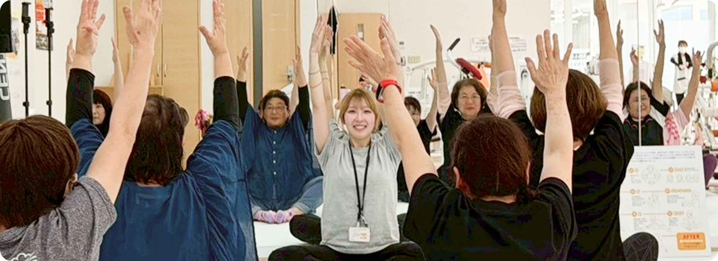 同じ時間に来る仲間ができて、まるで学校のような雰囲気です。運動のあとにおしゃべりする時間も楽しみのひとつ。体も心も元気になりました。